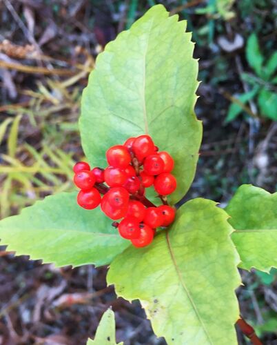 寒波で雪が降り続くと聞けば、寒風の中のセンリョウより、雪の中のセンリョウに心奪われ、赤と白の対比を愛でたくなります。そして、「赤い実を 雪降る中に 置いてみる」、「雪積もり 無彩の中の 実の赤さ」などと洒落て見たくなります。 センリョウはセンリ…