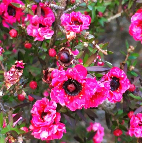 ギョリュウバイはフトモモ科の常緑低木で、ニュージーランドとオーストラリアが原産。「ギョリュウバイ」という名前はギョリュウに似て葉が小さく、花がウメに似ていることからついたが、ギョリュウ科のギョリュウ(檉柳)ともバラ科のウメとも関係はない。1…