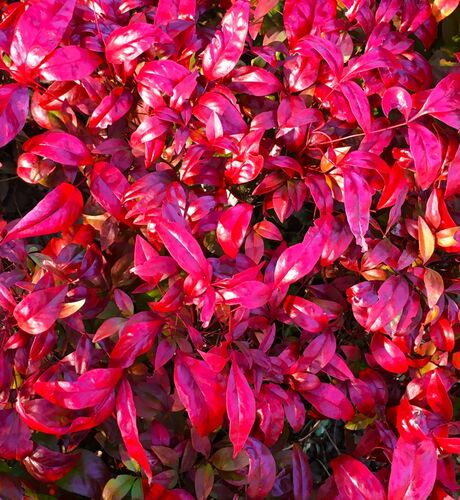 冬のナンテンは赤い実が美しいですが、同じナンテン属のオタフクナンテン(お多福南天)は赤い美しい葉をもつ園芸種です。背が高くならない「矮性」の品種で、取り扱いが簡単で、カラーリーフとして公園、歩道の植え込みに幅広く利用されています。湾岸地域…