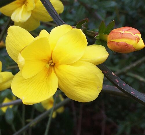 ウンナンオウバイの黄色の花と緑の葉が春の陽の中で光っている。ウンナンオウバイの別名はオウバイモドキ(黄梅擬)で、モクセイ科の常緑低木。3月から4月頃に開花。つる性で、花は鮮やかな黄色。画像は八重の花だが、一重のものもある。 ウンナンオウバイの…