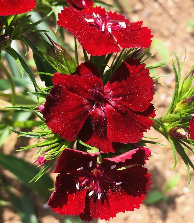 ナデシコの仲間の中でも特に花が美しいことと、丈夫で生育がよいことから、よく栽培されています。色とりどりの花が咲きそろうと、とても印象的です。