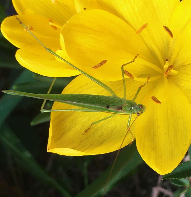 そのツユムシがキバナタマスダレの花にいるのを偶然に見つけました。きっとキバナタマスダレの花粉を食べに来たのだと思います。10月に入り、秋がやって来ています。