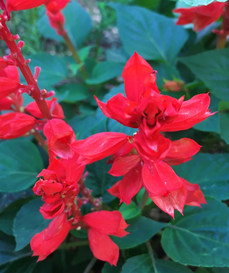 サルビア・インボルクラタ(Salvia involucrata)には上部の苞葉が球状になるものと,長細いタイプがありますが,これは長細いタイプの品種です(最初の二枚の画像)。クリスマスなのにまだ元気に咲いています。