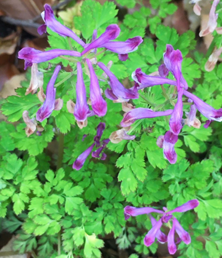 ケシ科のムラサキケマン(Corydalis incisa)は花の形が仏壇に飾る仏具である華鬘に似ていることから命名されました。可愛い見かけに反して全体に毒があります。ムラサキケマンは秋に芽生え、春に紫色の花を咲かせます(画像)。山裾や竹林の中などの、直射日光が少ない場所に生育します。