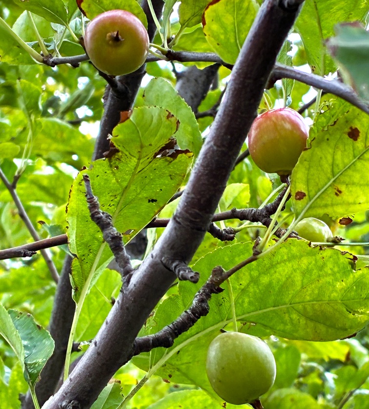 ヒメリンゴの実はなかなか頑丈で、11月に入っても実の多くが落ちずに残っている。その実は流石に赤く色づき出しているが、実の青味も確かに残っている。5月から11月末まで実をつけている理由を考えると、何だかとても頑固なヒメリンゴの一途さが感じられるのである。